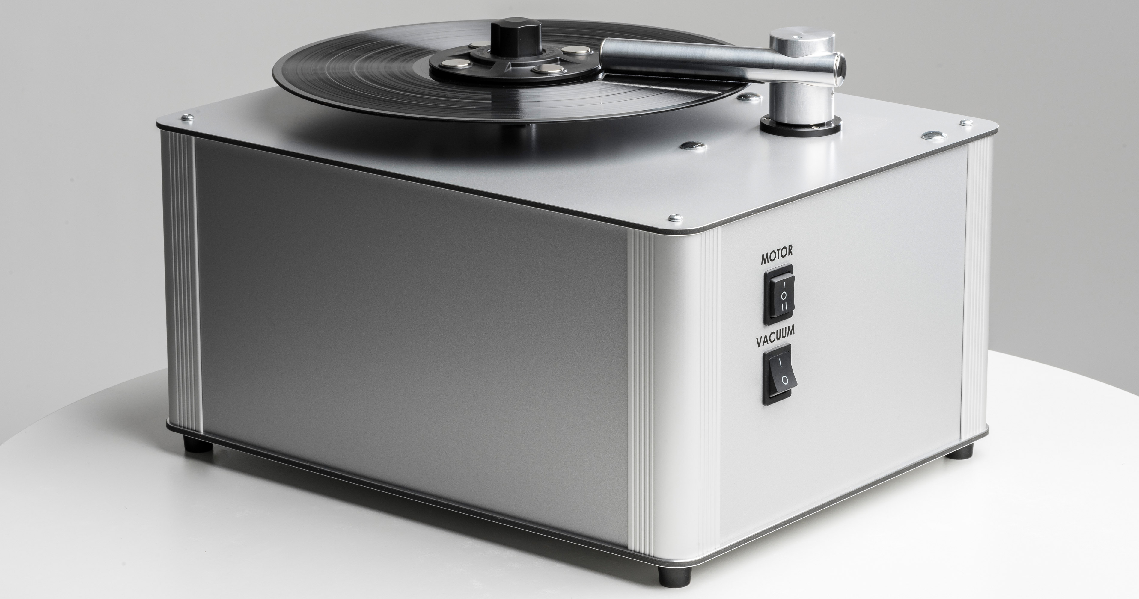 For those seeking the ultimate cleaning experience, look no further than the VC-S3. This full-scale cleaning machine takes vinyl restoration to a whole new level. With its robust construction and advanced features, it offers a comprehensive and thorough cleaning process. Similar to its compact counterpart, the VC-S3 makes use of a motor and platter to rotate your records, while you apply the cleaning fluid manually. The powerful vacuum arm then comes into play, ensuring that every inch of your vinyl is free from any residue or impurities. Leaving you with Impeccably clean records that will deliver an unparalleled listening experience, revealing the true potential of your cherished vinyl collection.