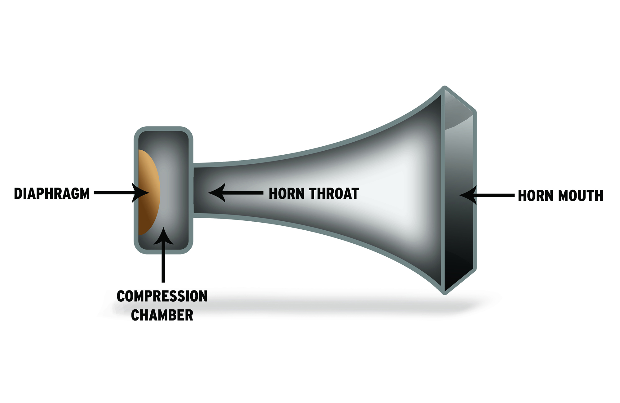 The main responsibility of the driver, in most cases a small vibrating diaphragm, is to generate sound waves in response to an electrical signal supplied from a source. The driver however, may not always be successful in doing so on its own due to the surrounding air and a mismatch of impedance. The acoustic horn corrects this by acting as a shield and allowing the sound waves to transfer smoothly into the surrounding air.